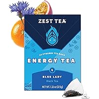 Zest Energy Tea - Blue Lady - High Caffeine Passion Fruit Black Tea Bags - Caffeinated Coffee Altnernative/Substitute - Natural, Non-GMO & Keto Friendly - Hot or Iced - 20Ct Pack - 150mg Caf
