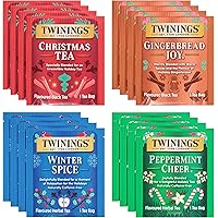 Twinings Christmas Holiday Variety Tea Bag Pack (40 Count) 4 Flavors Include Christmas Tea, Winter Spice, Gingerbread Joy, Peppermint Cheer, Seasonal Gift for Her, Him, Family, Friends
